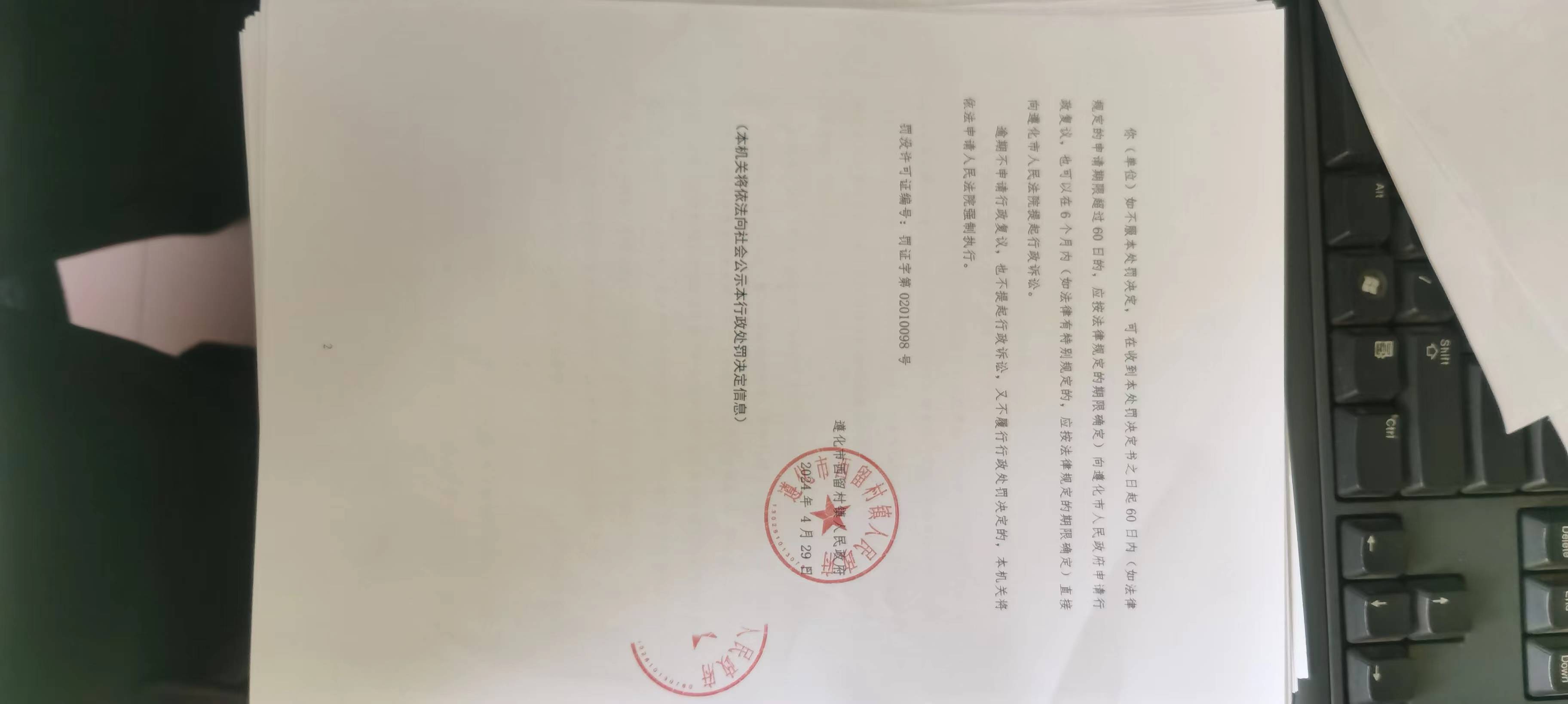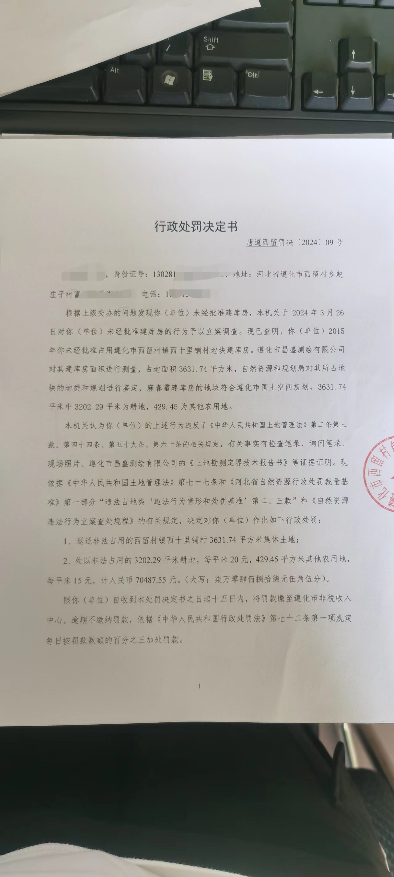 行政处罚决定书唐遵西留罚决[2024]09号