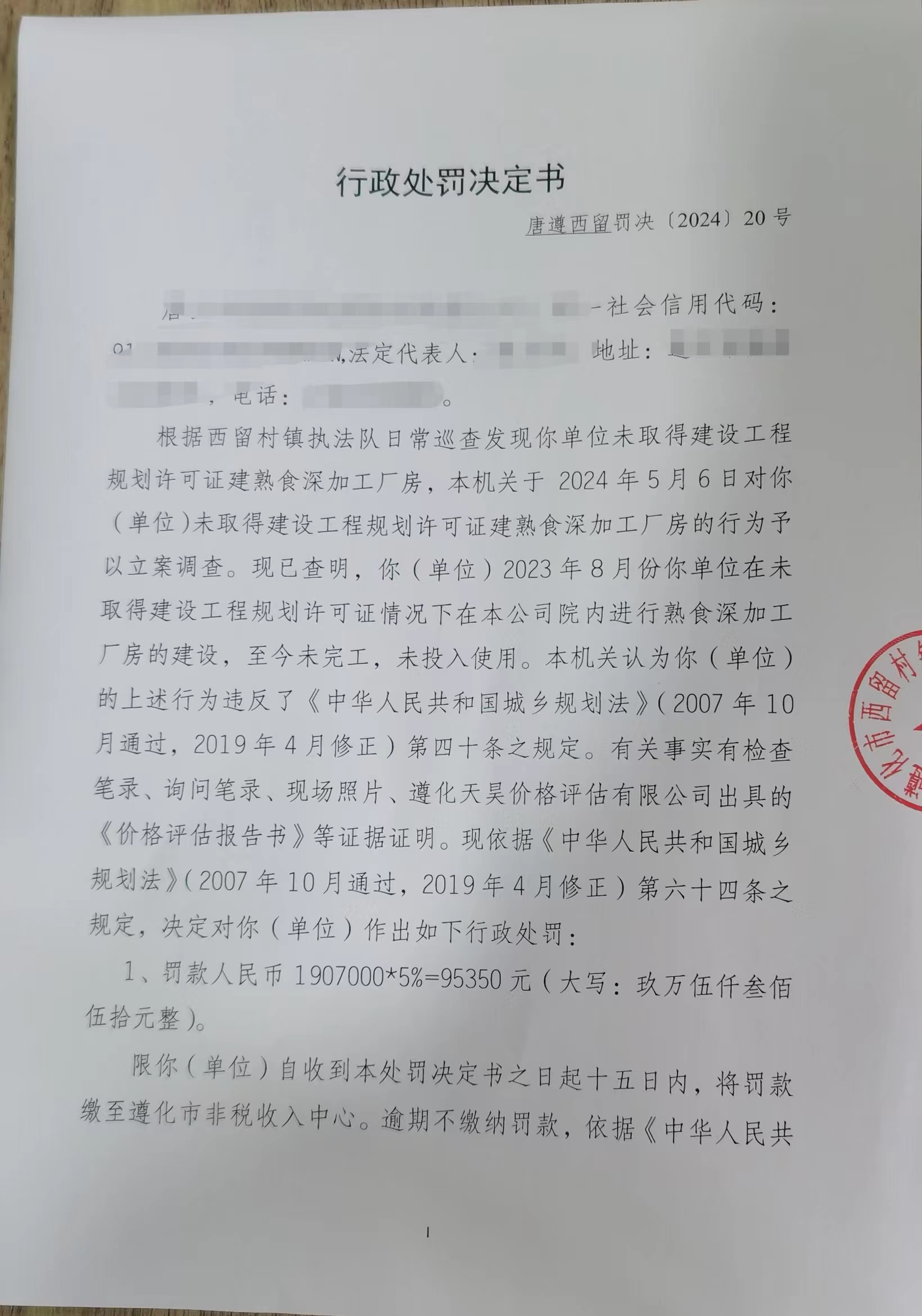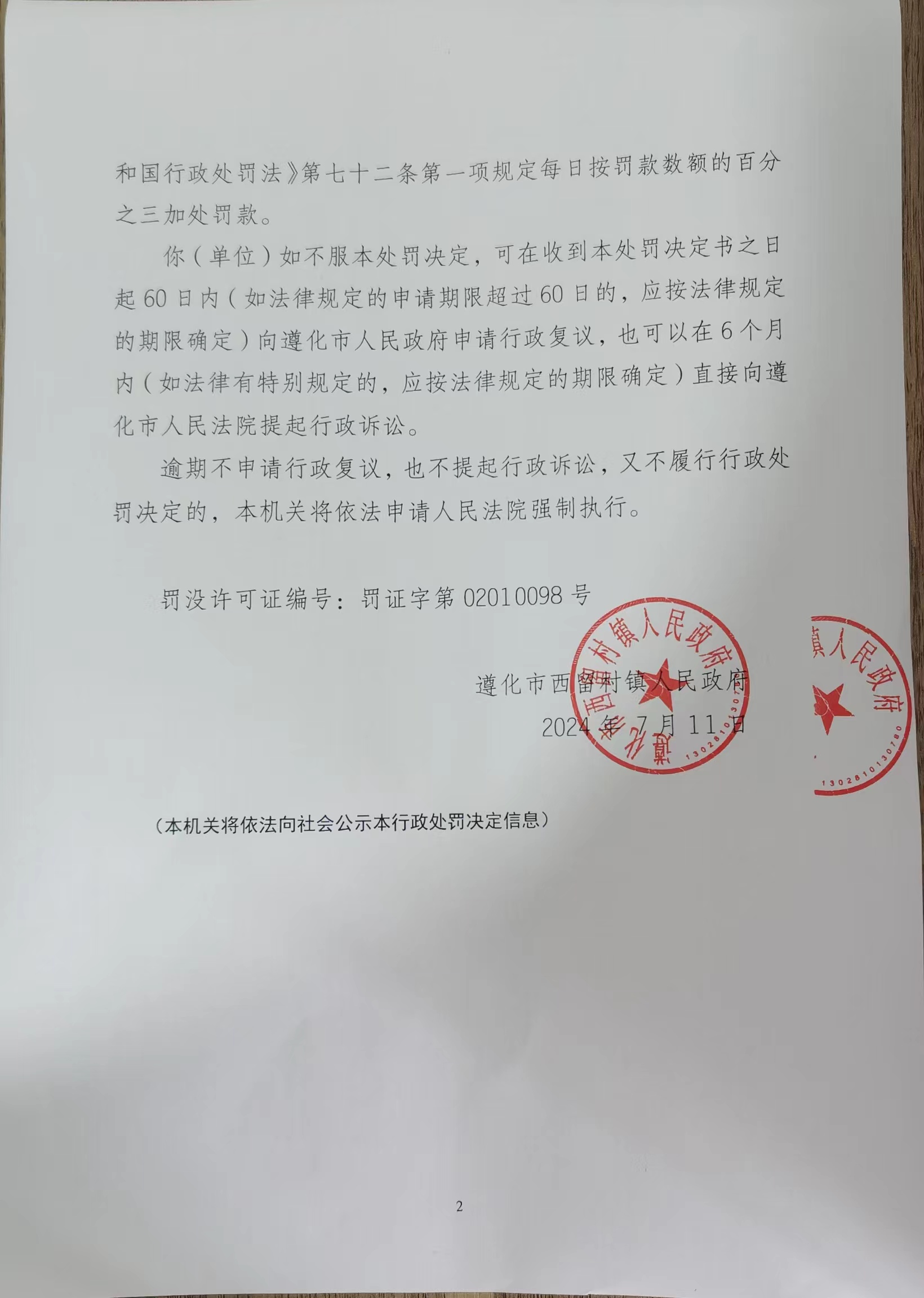 行政处罚决定书 唐遵西留罚决[2024]20号